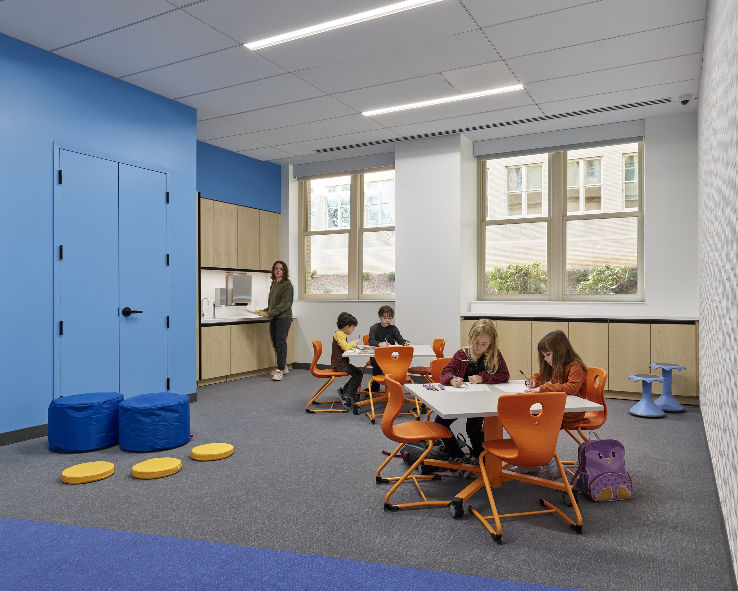 The Center for Autism, the oldest of its kind in Philadelphia, supports children and young adults from early childhood through young adulthood. When the Center relocated to a new home within a historic building in West Philadelphia, the challenge extended far beyond adaptive reuse. The goal was to create an environment that could support dignity, regulation, and care for individuals who experience space and sensory input in fundamentally different ways, while also strengthening the Center’s ability to attract and retain those who work there.